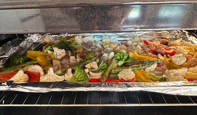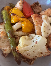 OK this one has to be the easiest meal I have made ever. It is made of whatever I had in the house, I didn’t measure anything, it was made in the oven in one pan, clean up was easy and this was absolutely delicious.