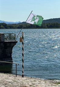 Continuing, I walk over the walkway that passes over the pier and find myself in the garden of Largo Garibaldi which houses the bronze Arona statue of Atlas that commemorated the 50th anniversary of the founding of Avis in Arona on September 16, 2001. There is also the bust dedicated to Luigi Boniforti who was a leading figure in the political and cultural life of Arona and the Verbano area in the 19th century. On the lakeside, there is the Arona flag that blows in the wind for everyone too see. Across from here is the monument of the boatman. A statue, unveiled on May 29, 1977, which depicts boatman Gaudenzio Pizzetta, one of the last to sailors to transport people back and forth on the waters of Lago Maggiore. Not too far is also the shrine of Sant’Anna who faces the lake and is the Patron Saint of Sailors. She watches over the lake to this day.