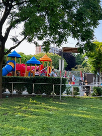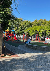 Mentre cammino verso la città, il parco per bambini e il campo da basket sono alla mia sinistra. In questo momento, c'è una ruota panoramica per i visitatori per godersi il panorama. Continuo a passeggiare e mi godo il mercato, la vista sul lago o la bellezza dei giardini ben curati e del monumento ai caduti. La grande fontana alla mia sinistra ha attualmente i pinguini di Cracking Art e la sera la fontana è illuminata con bellissime luci.