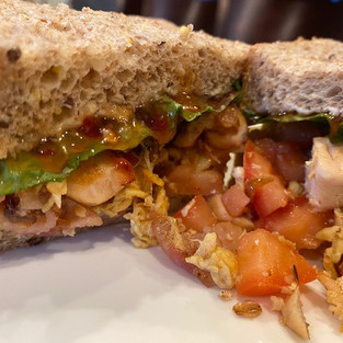 Went to the local market and bakery and put together this sandwich of fresh produce and bread.