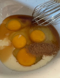 In una ciotola sbatti insieme le uova, il latte, la vaniglia e la cannella