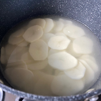 Peel and thinly slice potatoes (I used a mandolin to make them even)
