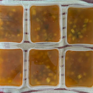 Quando vuoi mangiarlo basta togliere dal congelatore e mettere il contenitore in un po 'di acqua calda in modo che la zuppa si scongeli un po 'in modo da poter versare in una padella per riscaldarsi