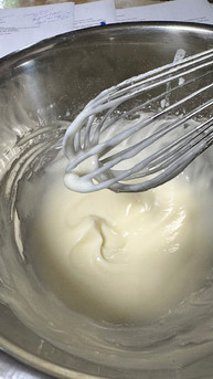 Add icing sugar and whisk until the cream cheese icing is thin enough to pour over the croissants