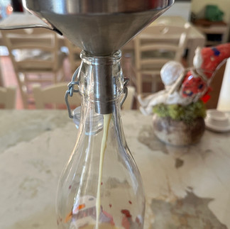 Una volta aggiunti i 3/4 del latte alle uova, versi il composto nella casseruola