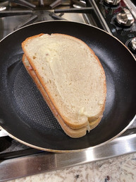 Heat skillet and add buttered cheese slice to the pan and top with the second piece of bread