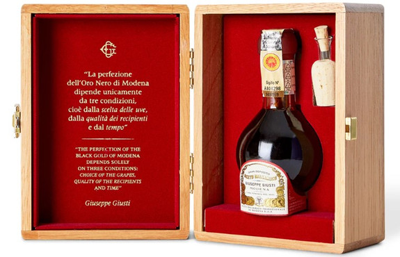 Exclusive Reserves: Extracted from the oldest family casks, in production since 1700, the bottles are numbered and finished by hand. The labels are decorated with 24-karat gold. The Giusti 50 Reserve is Balsamic from the 19th century and the Giusti 100 Reserve is Balsamic from the 18th and 19th century