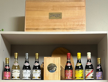 Historical Collection: Five Balsamic Vinegars of Modena classified by the number of medals they have. Each has a different undertone dependent on the wine vinegar added, the barrel and length of time they were aged
