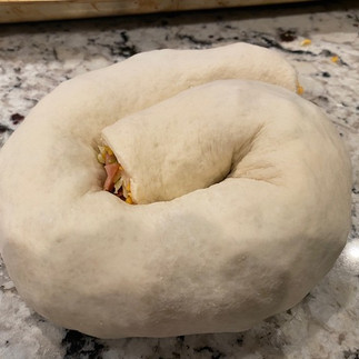 Using pre-made pizza dough to roll this fully loaded rosette makes it a quick and easy meal. Can be made for brunch or lunch, add a side salad like I did and it is dinner.