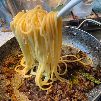 Carbonara can be made with so many flavours and this one with Italian sausage and asparagus is a great pairing. Served with a rose wine makes it a wonderful meal.