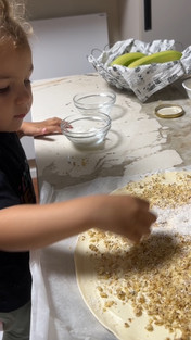 Ho trovato la crema spalmabile al limone al supermercato e dato che Ariana era qui e voleva fare i biscotti, abbiamo messo insieme questi involtini al limone, cocco e noci pecan. Ho sempre la pasta sfoglia in frigo, quindi è facile farla con lei.