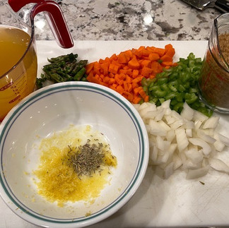 Stir in rice, rosemary, lemon zest, lemon juice, broth, and asparagus
