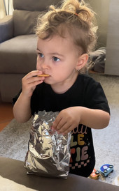 Ha iniziato a mangiare pablum a tre mesi con un po' di frutta e da allora ha amato il cibo. Ariana ti farà sapere rapidamente cosa le piace e cosa non le piace. Per fortuna ama il cibo e non è una schizzinosa