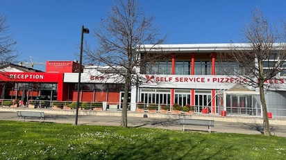Avevamo bisogno di due camere, una per 2 adulti e 2 bambini e una per 2 adulti, ma avevano solo una doppia e un appartamento disponibile e ho prenotato entrambi. Quando siamo arrivati all'hotel, l'esterno era allestito come una pista. Dispone di un ristorante Paddock, Pit Lane Self Service Pizza, Caffetteria Stop & Go, palestra Body Tunning e reception.