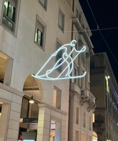 Inoltre, lo spettacolo di luci in Corso Vittorio Emanuele II è stato bellissimo da vedere. I diversi sport erano esposti in alto sopra di noi ed erano sponsorizzati da Lilly a Medicine Company e Milano Cortina.