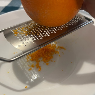 Zest the orange and add 2 tsp of zest into large bowl with sugar