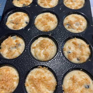 Sprinkle a little of the brown sugar orange zest on each muffin top