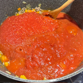 Aggiungi le salse e mescoli bene, abbassi la fiamma a media e copri la padella. Cuoci per 1/2 ora mescolando di tanto in tanto
