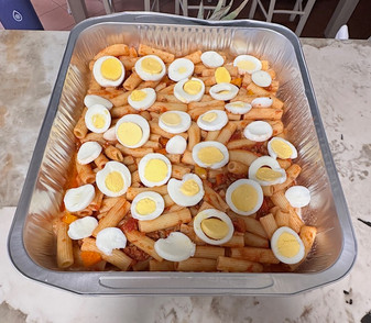 La nostra famiglia adorava la pasta al forno di mia madre e, onestamente, non posso duplicarla anche se ci ho provato. Aggiungo alcune verdure perché voglio assicurarmi che i figli e i nipoti le ricevano anche quando non pensano di farlo. Questa opzione ha uova sode affettate che danno un sapore extra.