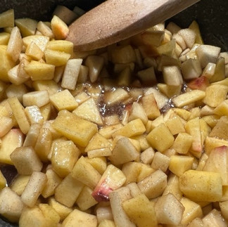 Strain peaches and apples in a colander and let cool for ten minutes