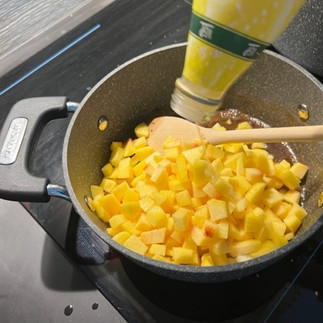 Aggiungi pesche, mele e succo di limone