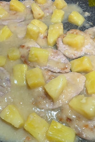 Add pineapple chunks to skillet and mix well, reduce heat to simmer