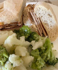 Ci sono giorni in cui vogliamo solo un pasto leggero e per me di solito è un panino con un'insalata. Oggi avevo dei broccoli e del cavolfiore in frigo quindi li ho lessati o potete cuocerli al vapore, poi li ho scolati e lasciati raffreddare e ne ho fatto un'insalata fredda per accompagnare i miei filetti di maiale cotti velocemente per renderlo un panino caldo.