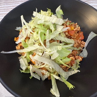 In una ciotola inizia con le patate arrosto sul fondo condite con il composto di carne. Poi divertiti ad aggiungere qualsiasi altro condimento che desideri e goditi gli strati di sapore