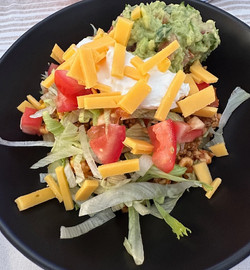In a bowl start with roasted potatoes on the bottom topped with meat mixture. Then have fun adding whatever other topping you want and enjoy the layers of flavour