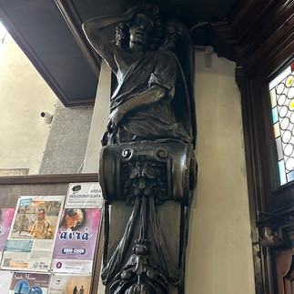 The wooden choir has 15 stalls that occupy three sides of the apse. Each stall is decorated by a tablet with effigy of a saint carved in bas-relief (the twelve apostles and the saints worshipped in the parish church)
