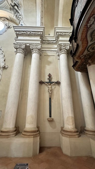 Inside, an elliptical frescoed dome covers the large nave and is supported by four polystyle pillars. The large high altar dates back to 1939 and is enriched by statues and mosaics. There are many other beautiful works of arts that date back to the 1700s to look at. The choir is in baroque style from 1768 and houses the large organ built in 1814.