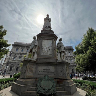 Coming through the galleria the first area we walk into is Piazza Della Scala, named after the renowned Teatro alla Scala Opera House. Here sits a monument to Leonardo Da Vinci which stands over 23 feet (7 meters) tall and it's base is made of Baveno granite.
