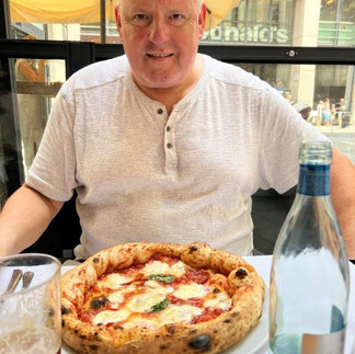 Abbiamo bevuto rapidamente un paio di birre e abbiamo mangiato una Bruschetta Caprese per iniziare. Poi ho mangiato una pizza Margherita con Bufala e Gianni la pizza Regina Diavola. Per dessert abbiamo mangiato Mousse al cioccolato bianco e Profiteroles. Alla fine del nostro pasto il cameriere ci ha portato tre fiale piene di Limoncello, Meloncello e Pistacello che erano tutte deliziose, ma ho bevuto solo un piccolo sorso di Meloncello e Pisatcello. Indovina chi ha bevuto il resto?