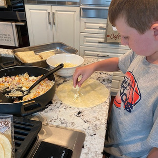 You wouldn’t think rice and tortilla works but it truly does. The rice, ham, pepper, onion and feta are sautéed to infuse flavours that when wrapped in a tortilla and baked, topped with more cheese makes it a great dish. I served with my tomato, cucumber, bocconcini salad. The pairing was perfect. Brody helped me put it all together and both Brody and Blake were surprised how good it was. They cleaned their plate to that means it is a kid friendly meal.