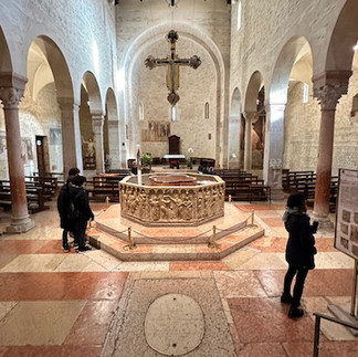 Baptistery – Also known as the Church of San Giovanni in Fonte was built in the Lombard era but completely rebuilt in 1123. For many years now, it has been used as a baptistery for the Cathedral. It has many frescoes that date back to the 14th century and the famous 12th-century baptismal font with reliefs depicting Jesus’ life and was carved from a single block of marble. Its octagonal shape is symbolic as the number eight refers to the eighth day, which ends the earthly week and leads to eternity. The eighth day also indicates the first day after the Sabbath: Resurrection Sunday.