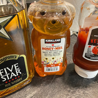 Mix together ketchup, whiskey and honey and pour over meatloaf and bake for 10 more minutes