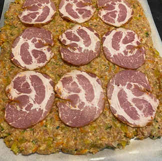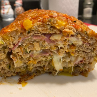 I wanted a lighter meatloaf therefore this one has more veggies than meat, but add some fillings and it makes this one super moist and light. I topped it with a whiskey honey sauce for the last ten minutes and it added so much more depth to the flavours.