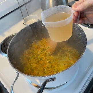 Pour in vegetable broth and let cook until liquid has been absorbed, veggies will be cooked