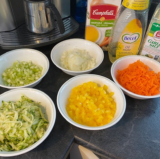 Let sit until veggies are fully cooled down. I usually make this in the morning and they are ready for when I put together the meatloaf for dinner